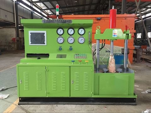 先將供壓泵用的電接點(diǎn)壓力表指針調(diào)節(jié)在所需試壓壓力位置上,關(guān)閉<氣壓開關(guān)>,然后打開<水壓閥開關(guān)>, 按<水泵起動>鈕,即可測試水密封性能的試驗(yàn)。測試完畢應(yīng)先打開<泄壓閥開關(guān)>排放壓力后卸下被試閥門。